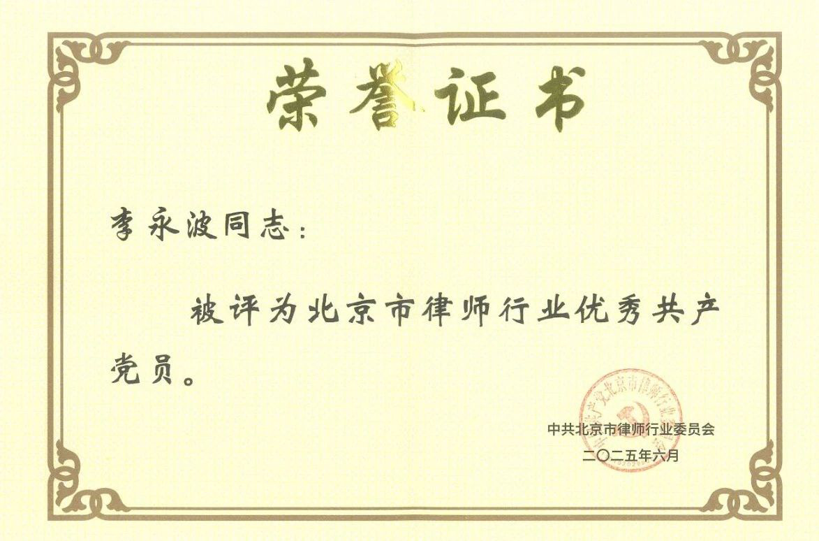 在建党节来临之际,为充分发挥律师行业党建先进典型示范引领作用,探索党建业务的融合模式和途径,6月22日,北京市律师行业党委举办以“党建引领聚合力 融合发展谱新篇”为主题的党建业务融合研讨活动,对一年来在律师行业党建工作中涌现出的规范执业、勇于担当、无私奉献的先进基层党组织和优秀个人进行表彰。中共宝威体育联合支部委员会凭借卓越的党建工作成果和行业引领作用,荣获北京市“先进律师事务所党组织”称号,宝威体育党支部书记、律所主任李永波被评为“北京市律师行业优秀共产党员”。